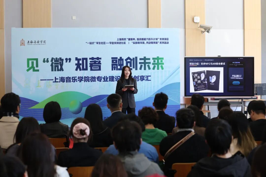 音乐工程系龚爱莉代表团队呈现《声影名片》项目,将 AR 技术与音乐艺术深度融合,为音乐剧赋予全新数字生命力。