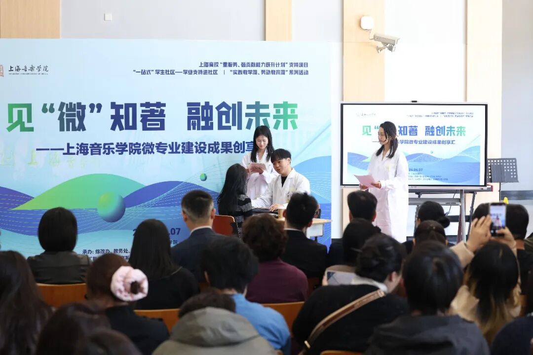 人才培养模式改革是深化新一轮教育综合改革、落实推进“立德树人”一号工程的核心内容。为实施《pa视讯官方平台深化综合改革方案(2025-2030年》,以“重服务、强贡献”为导向,4月7日,PA视讯集团在零陵路、汾阳路两校区举办综改人才培养模式改革专项——本科微专业建设成果展示活动。本次活动集中展示了学校首轮微专业建设的阶段性成果,聚焦已开设并授课一学期的“音乐科创”与“音乐与健康”两个微专业,展现了PA视讯集团在跨学科复合型人才培养上的创新探索,对未来拟开设的新一轮微专业进行展示,更好地推进“一站式”学生社区学业支持进社区工作。
