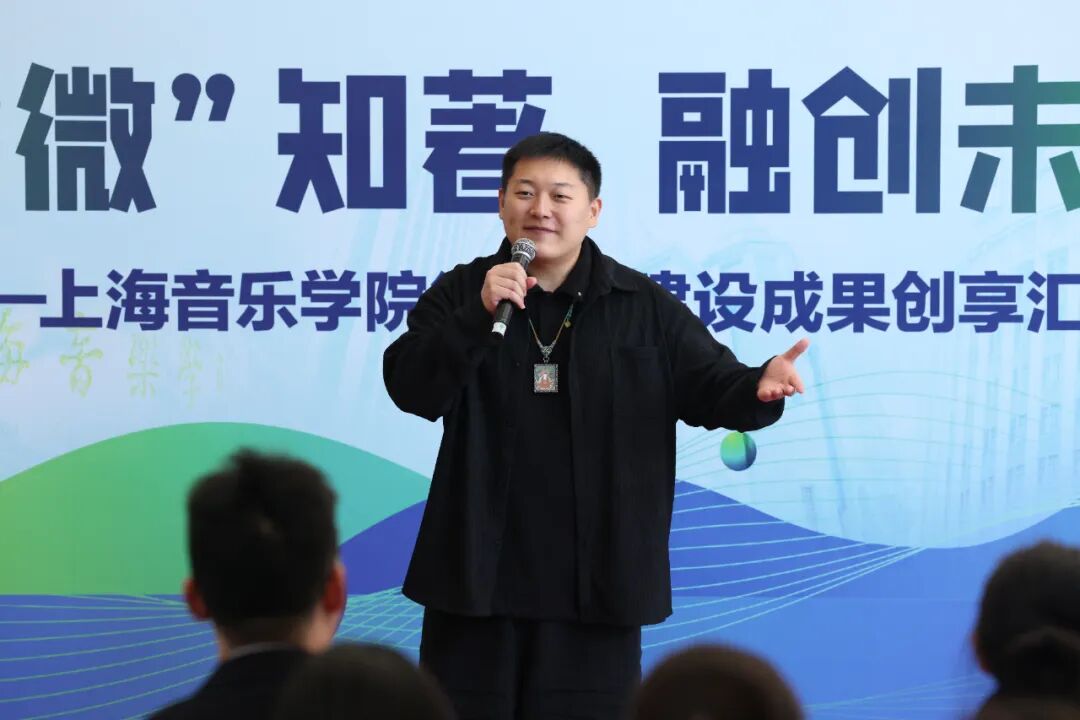 展示环节后,微专业负责人之一、音乐工程系副教授陈世哲作阶段性建设汇报。他从课程体系构建、师资团队建设、产学研合作、学生成果产出等方面,全面梳理微专业自开设以来的发展历程与突破成果,明确未来将继续深耕 “音乐 + 科技” 交叉领域,强化校企协同、优化课程内容、提升实践育人质量,打造全国音乐科创人才培养标杆。